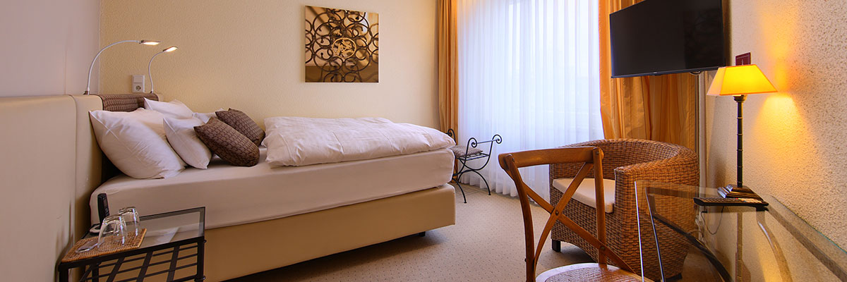 In unseren Economy Doppelzimmern wohnen Sie behaglich, individuell und genau richtig für eine entspannte Auszeit. Freuen Sie sich auf klassisch eingerichtete Zimmer mit einem praktischen Arbeitsbereich sowie einem USB-Anschluss direkt am Bett – perfekt, wenn Smartphone & Co. über Nacht bequem laden sollen.