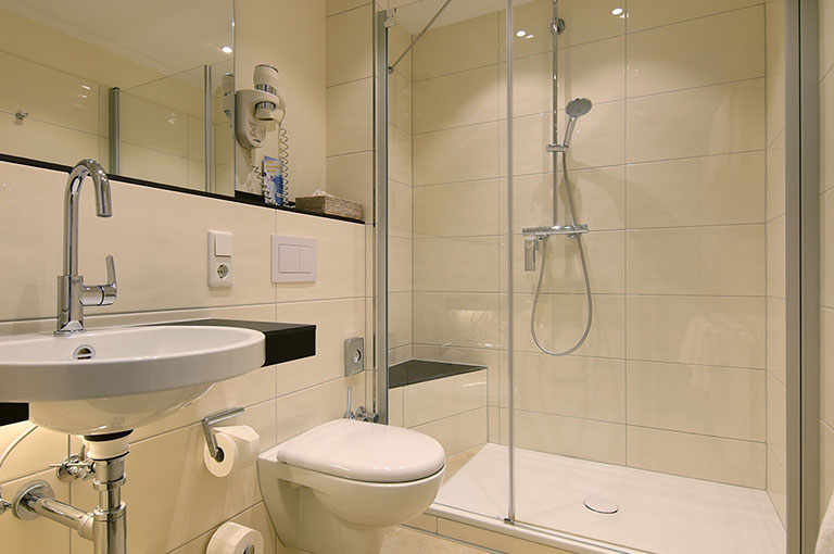 Auch im Bad setzt sich der Wohlfühlfaktor fort: Die Badezimmer sind im mediterranen Stil gestaltet und hochwertig ausgestattet. Die meisten Komfort-Einzelzimmer verfügen über eine Regendusche und ein angenehmes Schlummerlicht. Schminkspiegel, Föhn und ein integriertes Badradio gehören ebenfalls zur Ausstattung.