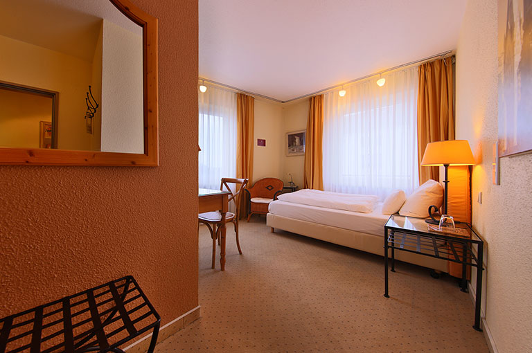 Mit viel Liebe zum Detail: Unsere hochwertig eingerichteten Komfort-Einzelzimmer bieten Ihnen modernen Wohnkomfort mit Flachbild-TV inklusive Satellitenprogrammen sowie einen praktischen Arbeitsplatz.